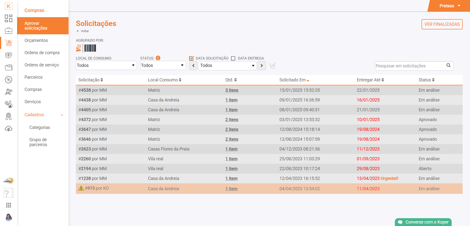 Além disso, o gestor com acesso a esse módulo pode conferir todas as aprovações/solicitações anteriores, mudar o local de entrega de cada pedido, buscar itens semelhantes aos requisitados caso seja preciso ou fazer tranferência dos produtos solicitados, de um local para outro.
