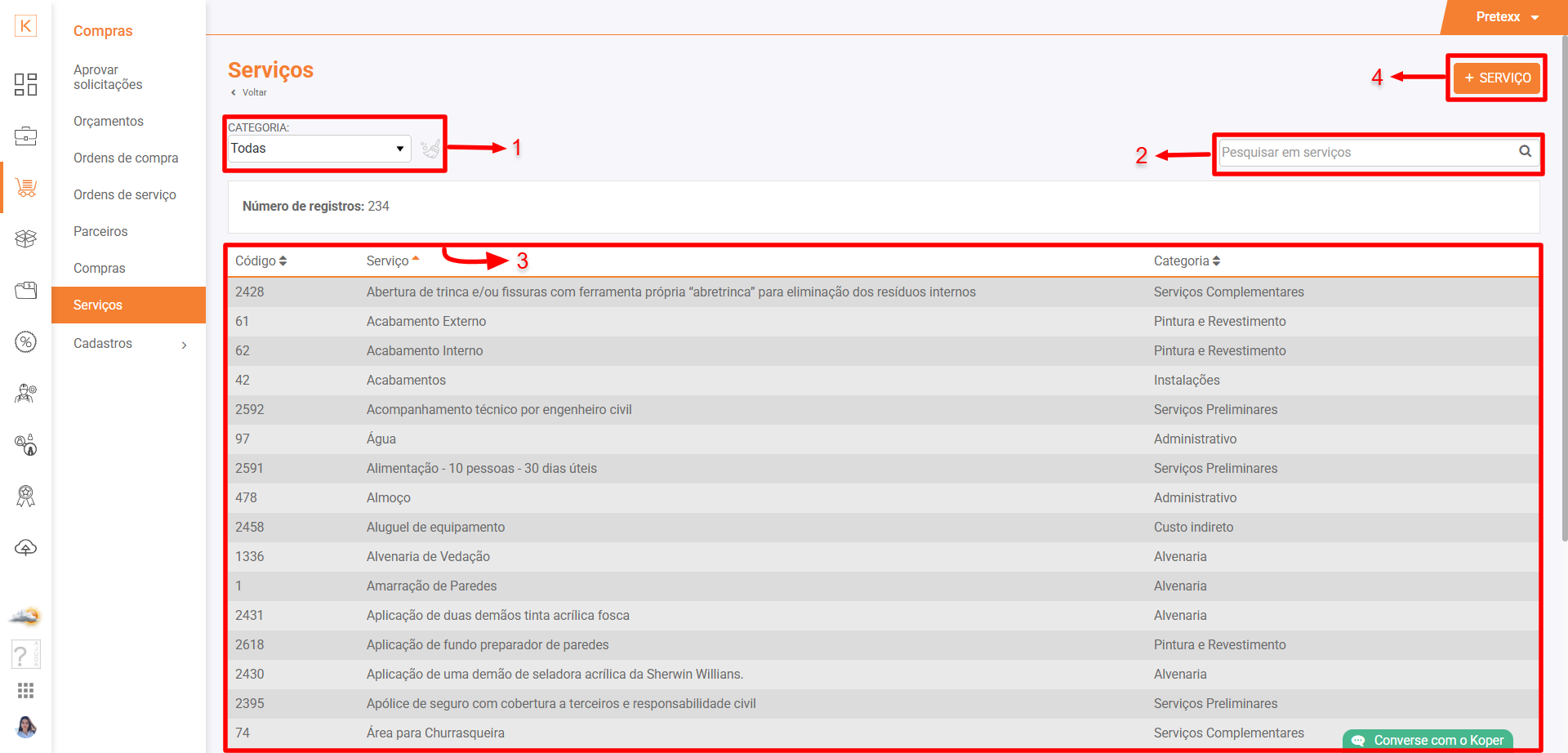 Acesse Koper > Compras > Serviços