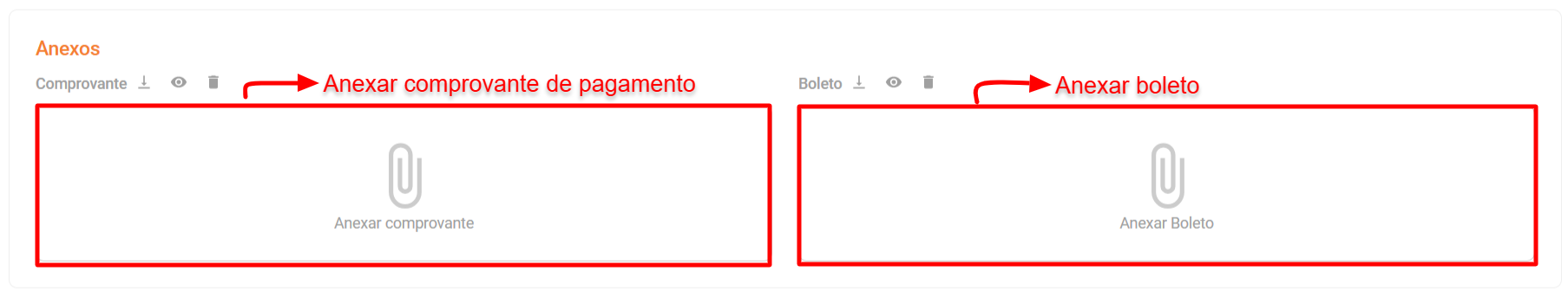 - - Anexar arquivos (boletos e comprovantes);