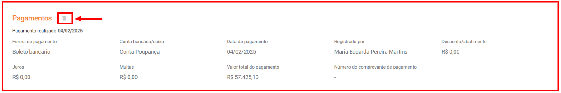 - - Excluir pagamento