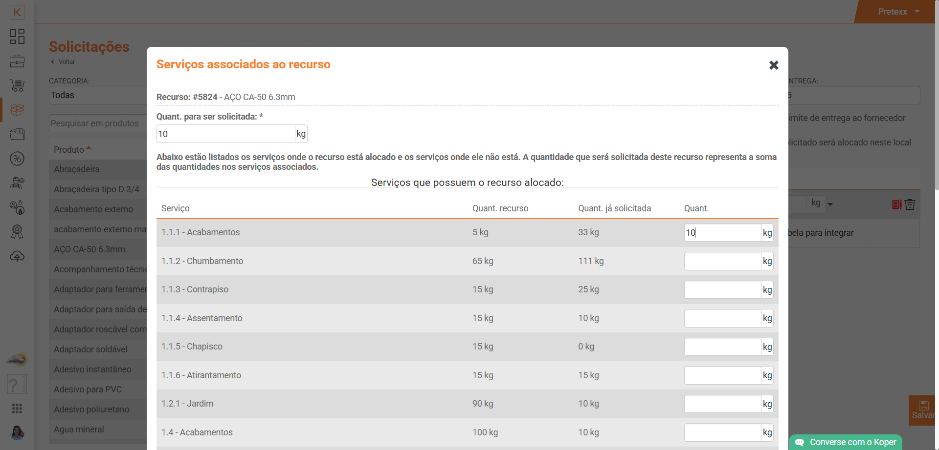 Acesse Koper > Suprimentos > Solicitações