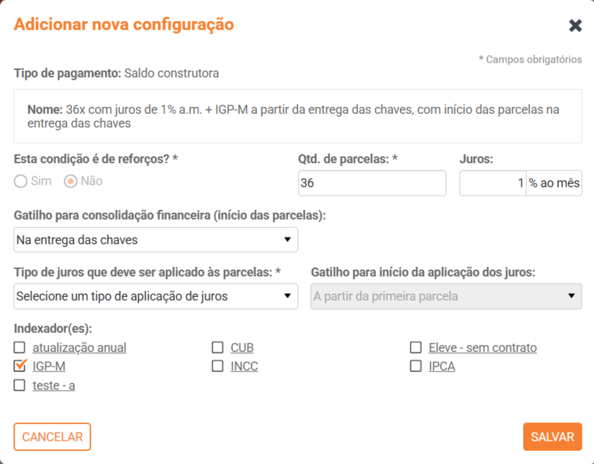 - 4. Cadastrar nova condição de pagamento (Saldo construtora).