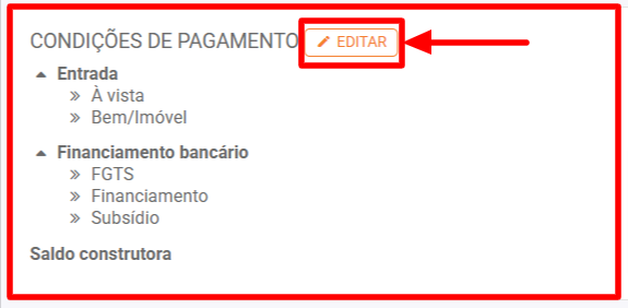 - Identifique o empreendimento que deseja fazer alterações na configuração de condições de pagamento e clique em
