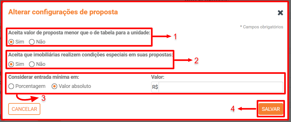 - Também defina se aceita que as imobiliárias associadas a este empreendimento e com permissão de vender suas unidades, gerem propostas com condições especiais;