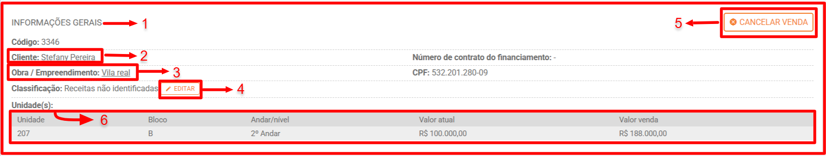 - Quando for venda de um empreendimento e/ou de um empreendimento vinculdo a um orçamento o Painel - Informações Gerais terá a seguinte estrutura: