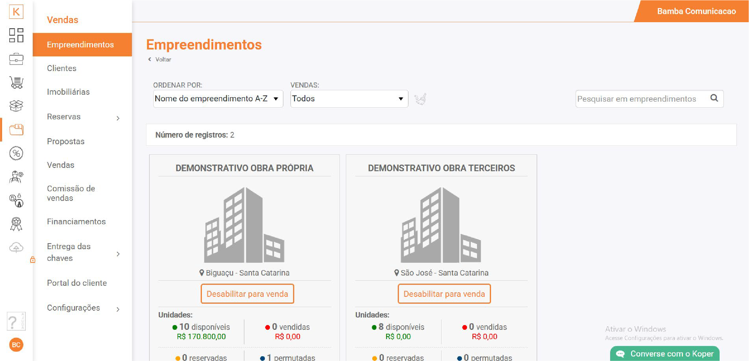 Gerenciamento centralizado de todas as empresas/projetos em um único sistema e login.